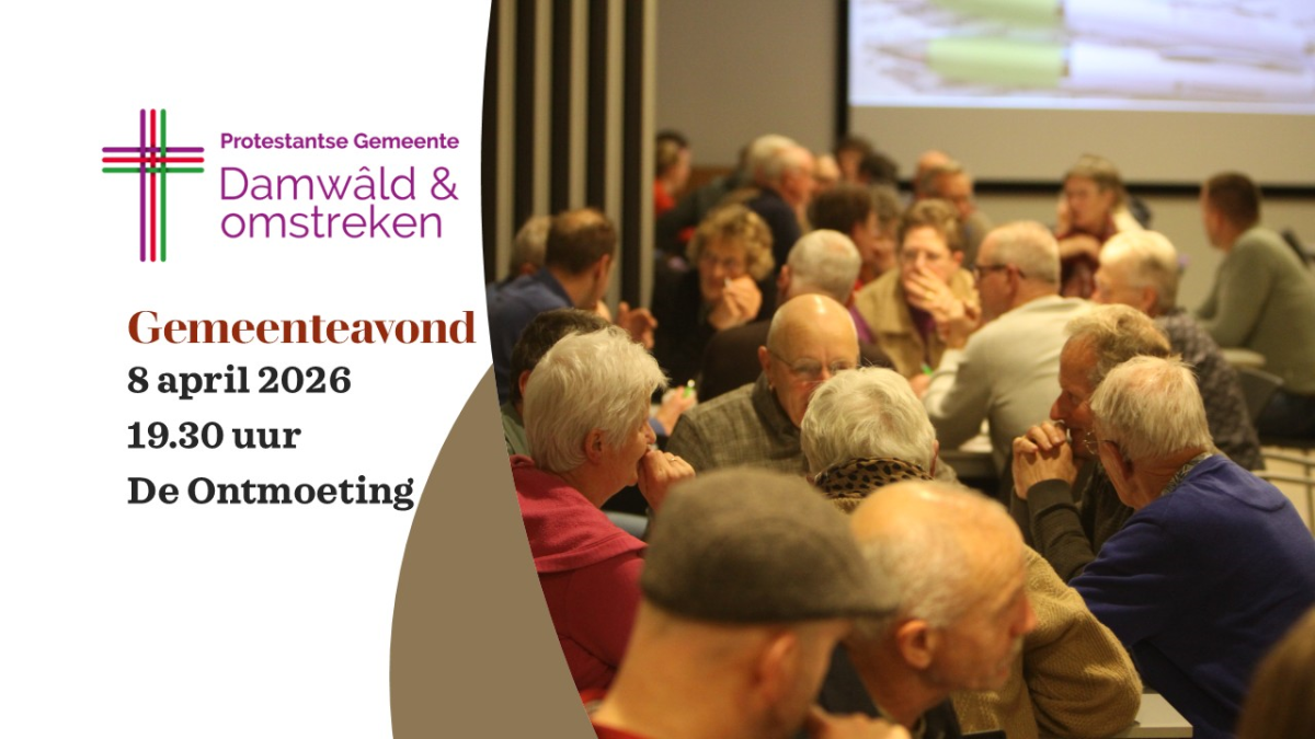 Op woensdag 8 april 2026 organiseren we als Protestantse Gemeente Damwâld en omstreken een gemeenteavond die je niet wilt missen! Het belooft een boeiende, attractieve bijeenkomst te worden, waarin we samen nadenken en werken aan thema’s die onze gemeente verder helpen en waarmee we in de komende tijd inhoud en uitstraling willen geven aan hoe we kerk willen zijn in Damwâld en omgeving.